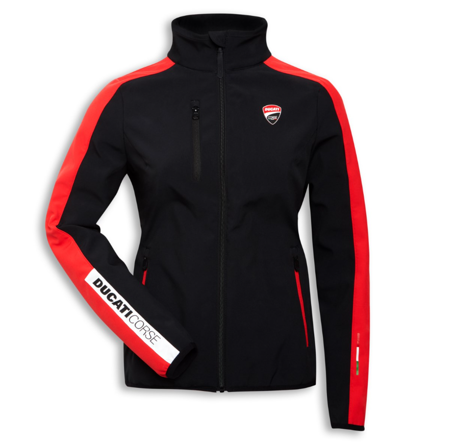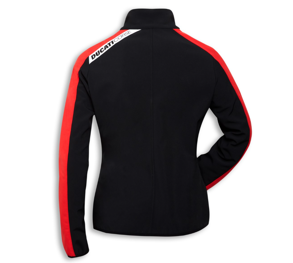 The new Ducati Corse Thrill windproof jacket, featuring a new look and fit, is ideal for all Ducati Corse enthusiasts. Made of three layers of stretch soft-shell fabric, it provides excellent wind protection in addition to being highly breathable, while the microfleece lining also makes it suitable for use as padding under other garments. It is the ideal companion for leisure wear, available in two different versions for men and women, but it is not designed to be used as a motorcycle jacket on its own.