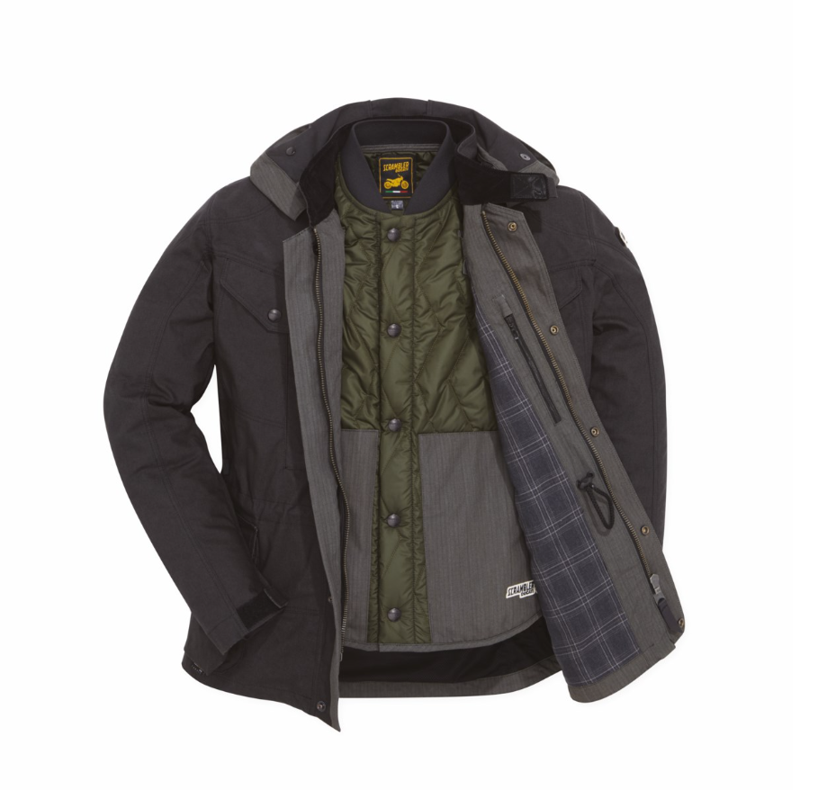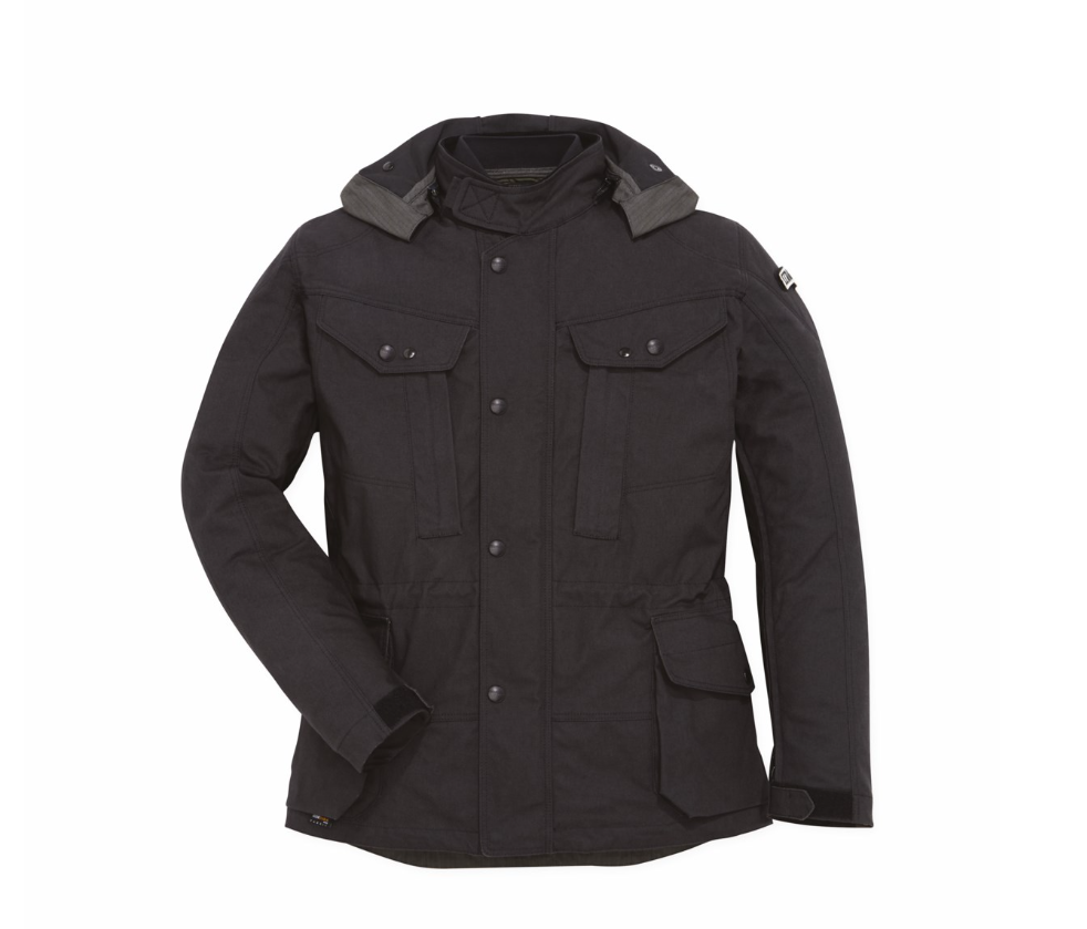 In perfect Desert Sled style, the jacket in fabric is comfortable, protective, and lends itself to multiple uses. Made from Cordura® cotton fabric, it has a removable hood, volume adjustments at the waist, neck, and wrists, air intakes under the sleeves, and eight ergonomic and generous outer pockets. Inside it is equipped with a removable quilted thermal vest with knit neck and padding in hollow fiber batting. The jacket is also equipped with EC-certified soft protectors on the shoulders and elbows, and includes a pocket for a back protector.